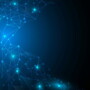 Abstract blue background with glowing interconnected dots and lines forming a digital network pattern on the left, symbolizing an Implementation Readiness Assessment, fading into a dark gradient on the right.